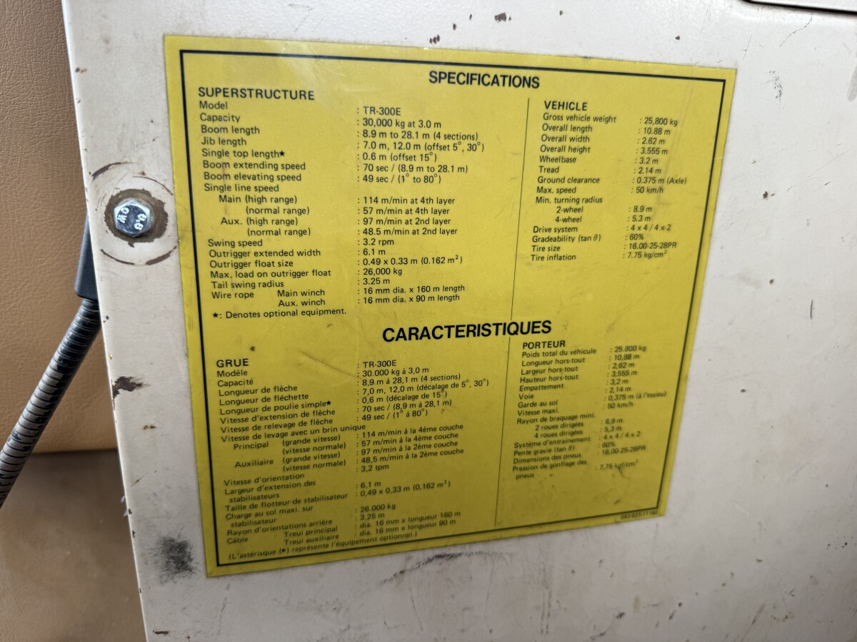 | وصف | Available at Boss Machinery! This Tadano TR300E-1 الرافعة \ مرفاع from 1989 has an engine power of 139 kW and counts 6706 operational hours. Always worked in The Netherlands. The total weight of this Tadano TR300E-1 is 25800 kg and the dimensions are 10.88 x 2.62 x 3.56. Furthermore, this TR300E-1 is equipped with . The Tadano الرافعة \ مرفاع also has a CE marking. Do you want more information or do you want to try the Tadano TR300E-1 at our yard? Please let us know. |