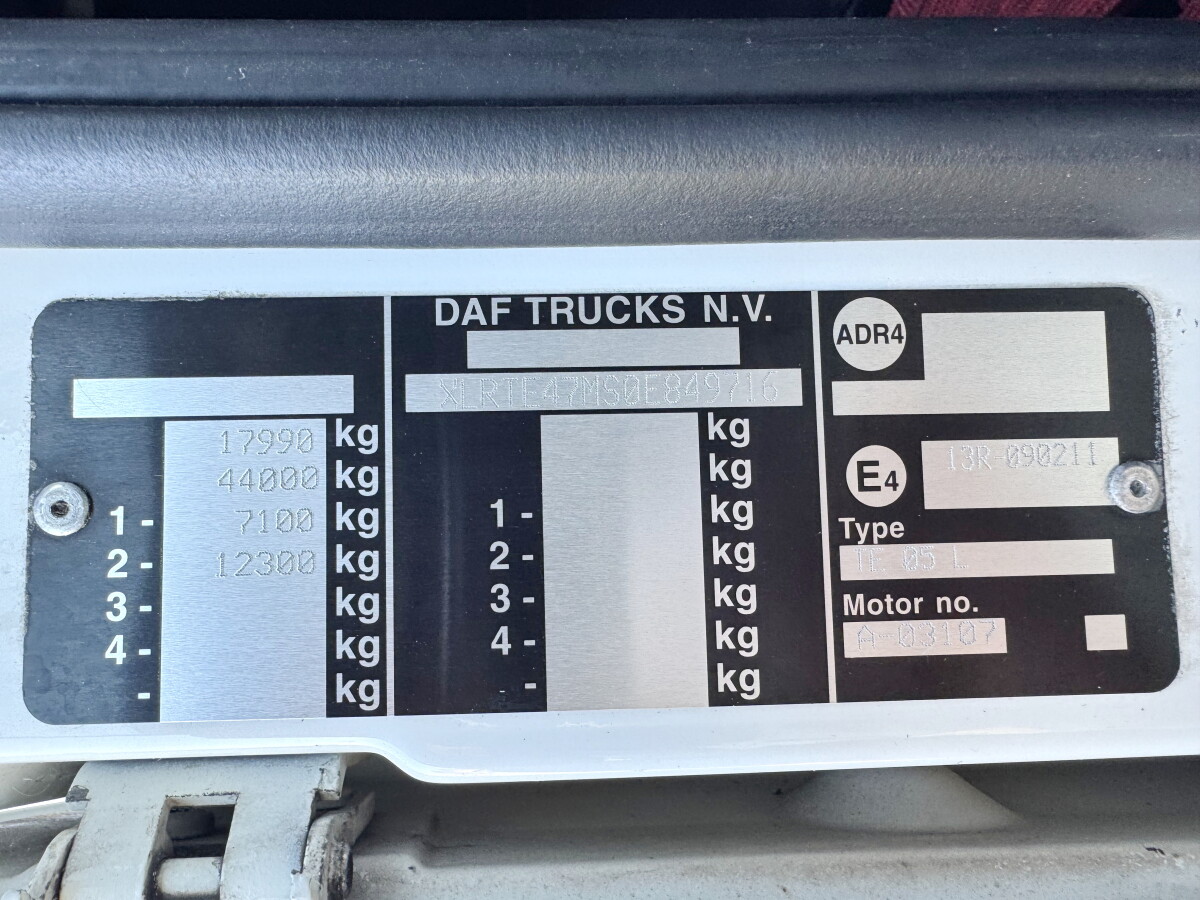 | وصف | Available at Boss Machinery! This DAF XF 105.410 MEGA الشاحنات from 2009 has an engine power of 300 kW and has 1221946 kilometres on the clock. Always worked in The Netherlands. The total weight of this DAF XF 105.410 MEGA is 7830 kg and the dimensions are 6.10 x 2.50 x 3.75. Furthermore, this XF 105.410 MEGA is equipped with Bed, Heated Mirrors, Radio, Tachograaf, المكيف\المبرد, Backup alarm, Electrical Mirrors, Cruise Control, Refrigerator. Do you want more information or do you want to try the DAF XF 105.410 MEGA at our yard? Please let us know. |