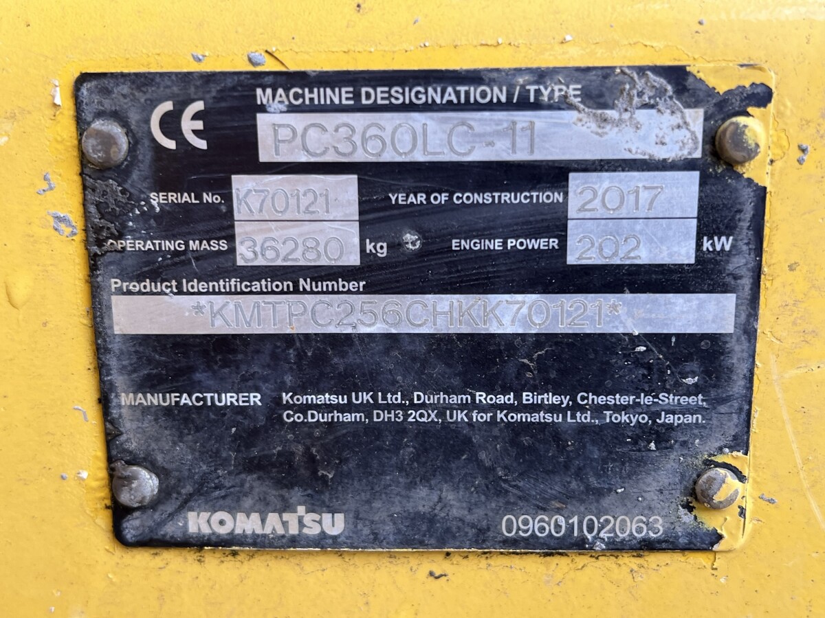 Description Available at Boss Machinery! This Komatsu PC360LC Excavator from 2017 has an engine power of 202 kW and counts 8769 operational hours. The total weight of this Komatsu PC360LC is 36280 kg and the dimensions are 11.25 x 3.38 x 3.35. Furthermore, this PC360LC is equipped with Quick coupler, Camera, Radio, Air Conditioning, Beacon, Extra hydraulic function, Hammer function. The Komatsu Excavator also has a CE marking. Do you want more information or do you want to try the Komatsu PC360LC at our yard? Please let us know.