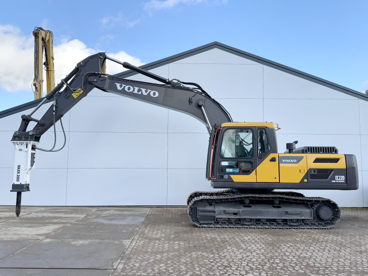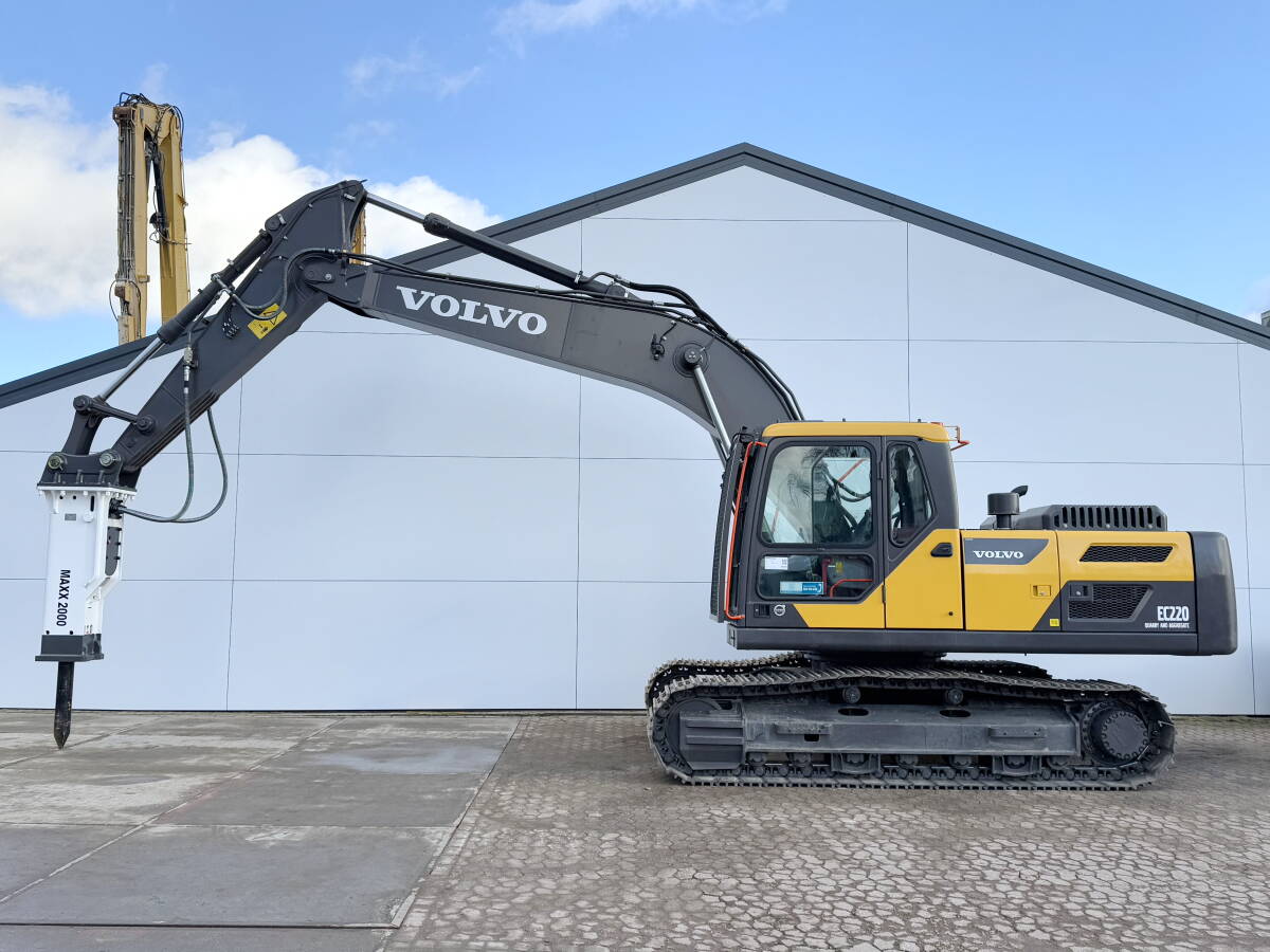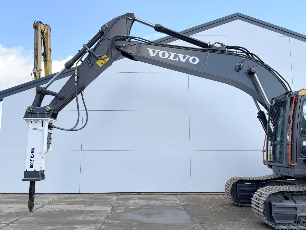 Available at Boss Machinery! This Volvo EC220D + Maxx 2000 Hammer Pelle sur chenilles from 2025 has an engine power of 123 kW and counts 9 operational hours.